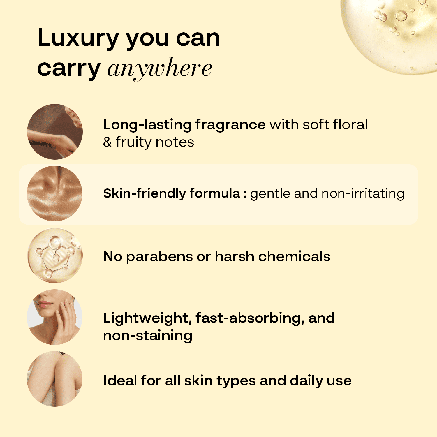 Perfect for daily wear, this lightweight mist adds a luxurious finishing touch to your routine while keeping you fresh, confident, and beautifully scented all day long.
